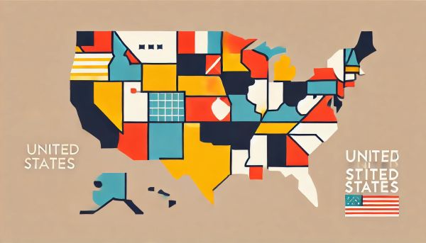Colorful Geometric Bauhaus Style USA Map Wall Art