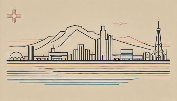 Minimalist Art of City Skyline and Mountain Landscape in Pastel Tones