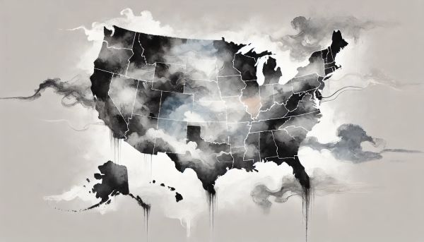 Ethereal Sumi-e Style USA Map: Artistic Interpretation in Brushstrokes
