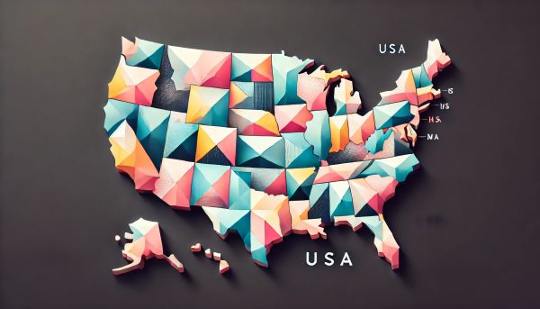 Colorful Geometric Polygon Map of the USA for Modern Interior Decor