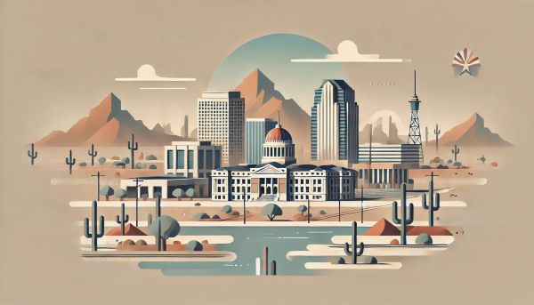 Artistic Depiction of Phoenix, Arizona's Urban and Desert Landscape
