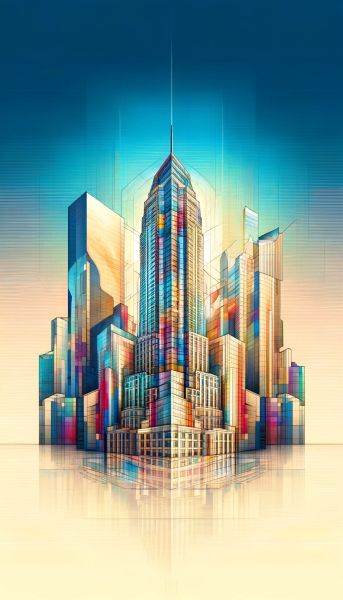 This striking image captures the Aon Center, nestled within an imaginative cubist interpretation of the urban environment. With its vibrant palette reflecting off glass facades, the artwork portrays a fusion of reality and abstraction, emphasized by the sharp geometrical cuts and dynamic play of lights and shadows. This distinctive style not only highlights the architectural elegance of the Aon Center but also transforms familiar city contours into a mesmerizing spectacle of color and form, appealing to both art aficionados and urban explorers alike.