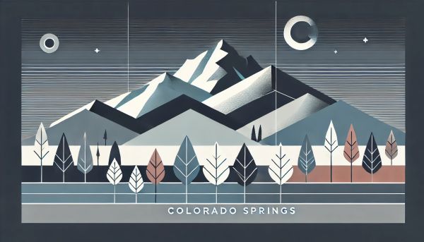 This captivating graphic art print features a stylized depiction of Colorado Springs, emphasizing the iconic Pikes Peak enveloped by a serene winter atmosphere. Its minimalist design uses geometric lines to compose the mountain and varied trees that showcase subtle fall hues against a cool, contrasting background. Perfect for modern decor enthusiasts, this piece combines natural beauty with a clean, architectural aesthetic, making it a distinctive addition to any space. The use of color and form strikes a balance between simplicity and elegance, capturing the essence of Colorado’s scenic landscapes.