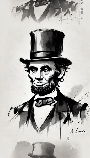 Sumi-e Style Portrait of Abraham Lincoln in Monochrome Tones