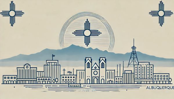 Minimalist Artistic Illustration of Albuquerque's Iconic Skyline