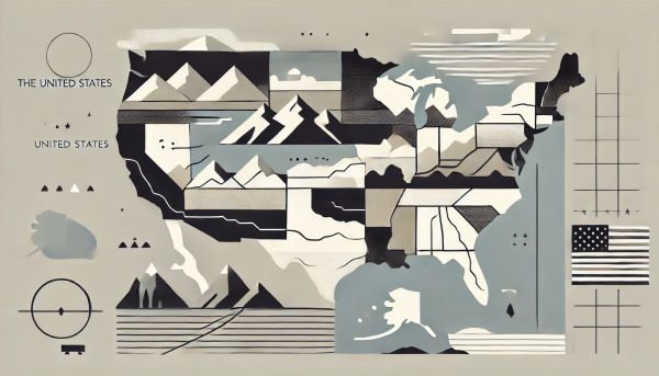 This captivating wall decor features a minimalist abstract depiction of the United States, showcasing a blend of geometric shapes and neutral tones that evoke a sense of calm and simplicity. The art piece efficiently uses shades of gray and blue with subtle white accents to highlight the diversity of the American landscape, including mountains, plains, and coastlines. This modern interpretation is perfect for adding a refined aesthetic to any home or office space, complementing both contemporary and traditional decors. It's a stylish choice for those who appreciate art that combines functionality with serene artistic expression.