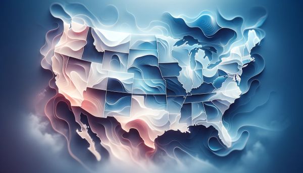 This image showcases an exceptional artistic rendering of the United States map, characterized by its smooth, flowing borders and an ethereal foggy aesthetic. The gentle curvature of the state lines provides a fluid, dynamic feel, while the subtle color transitions enhance the visual depth and artistic flair. Ideal for contemporary decor, this map merges geographical precision with modern artistry, making it an attractive piece for both educational purposes and aesthetic enjoyment in various settings.
