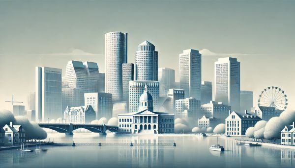 Artistic Representation of Downtown Boston in Monochrome Tones