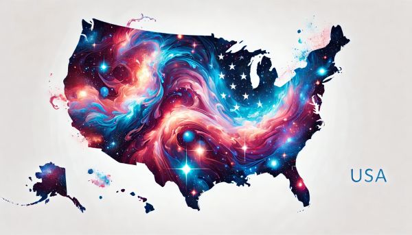 Cosmic Galaxy-Inspired USA Map Wall Art with Vibrant Colors