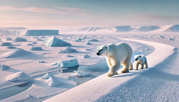 Polar Bear and Cub Navigating the Expansive Arctic Tundra