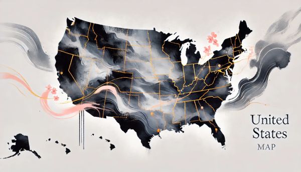 Sumi-e Inspired Artistic Map of USA with Fluid Aesthetics