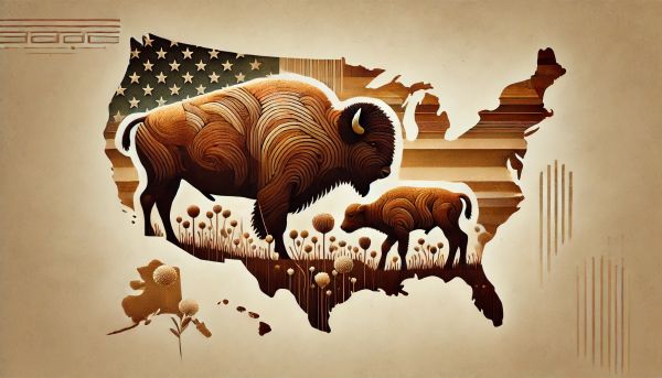 USA Map Art with Bison: A Motherly Love Embodied in Landscape