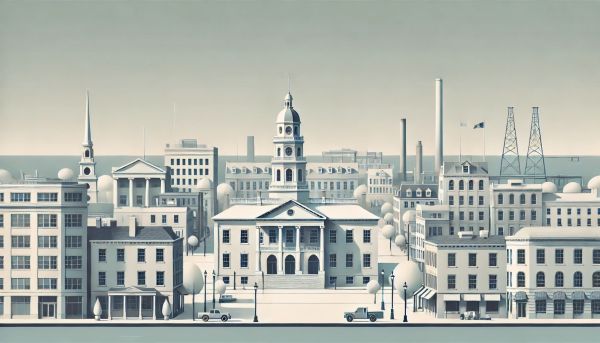 Minimalist Artistic Rendering of Downtown Dover, Delaware