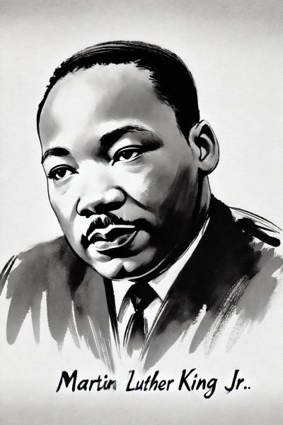 This striking Sumi-e ink portrait beautifully captures the essence of Martin Luther King Jr., employing a traditional Japanese technique that emphasizes simplicity and fluidity. The monochromatic tones and the soft, flowing brushstrokes help to convey the thoughtful and peaceful demeanor of this influential leader. Created with graceful contrast and minimalist detail, the artwork not only portrays the physical likeness of King but also evokes the powerful tranquility he embodied. This piece serves as an inspiring reminder of his contributions to civil rights and his enduring legacy in the struggle for justice and equality.