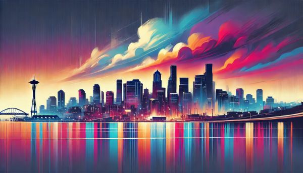 Neon Twilight: An Abstract Artistic Reflection of Seattle's Skyline