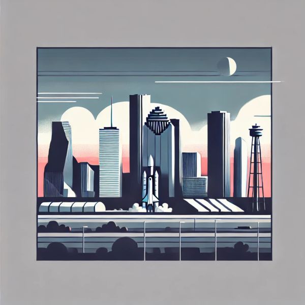 Geometric Illustration of Houston Skyline and Space Center