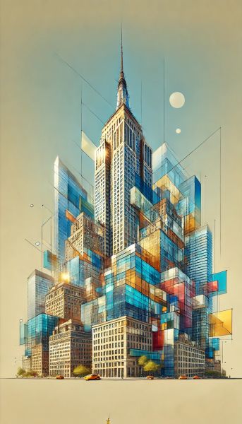 Cubist Interpretation of One Vanderbilt Amidst Daylight Scenery