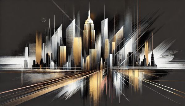 Abstract Metallic Depiction of New York City in Gold and Black Tones