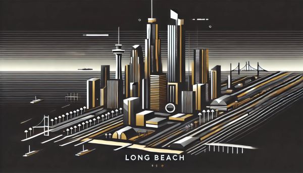 Futuristic Metallic Depiction of Long Beach Skyline and Infrastructure