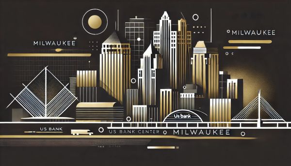 This striking artwork presents a futuristic depiction of Milwaukee's skyline in a chic, monochrome palette of black, metallic gold, and silver. Highlighted landmarks, including the prominent US Bank Center, are artistically represented, enhancing the city’s architectural prowess. Geometric shapes and minimalist design elements collaborate to create a visual that is both sophisticated and contemporary. This print is perfect for anyone looking to add a touch of elegance and modernism to their home or office decor.