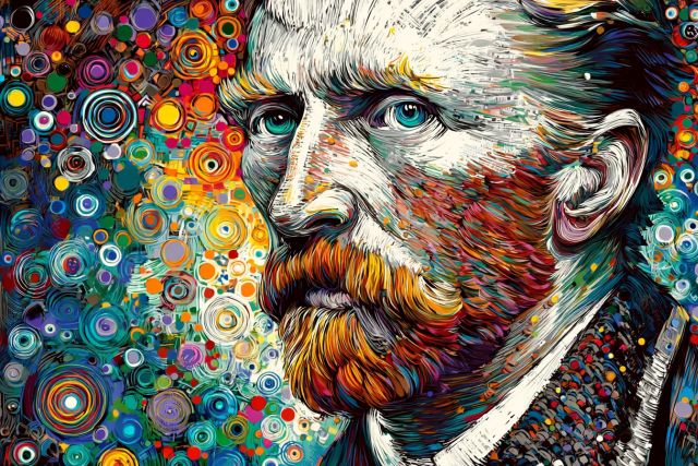 Visual Symphony: Van Gogh's Vivid Self-Portrait in Swirling Color - by Van Gogh