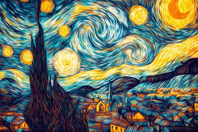 Starry Night over The Yellow House by Vincent van Gogh captures an ethereal, dream-like state of a sleepy village under a turbulent sky. In this masterpiece, the swirling skies dominate the canvas, rendered in deep, vibrant blues and bright, fiery yellows that bring to life the artist's inner turmoil and contemplation. The rolling hills and serene village are painted with soft, rounded shapes that contrast starkly with the dynamic and dramatic heavens above. This luminous depiction explores not only the beauty of the night sky but also the profound emotions of awe and wonder. Van Gogh's signature impasto technique, using thick, bold strokes of color, adds a palpable texture and movement, making the painting nearly leap off the canvas. *** About Starry Night over The Yellow House: Created during his time at the Saint-Rémy-de-Provence asylum in June 1889, this painting reflects a fusion of memory and imagination, where Van Gogh merges elements of his surroundings and thoughts into a visually striking composition. The style is quintessentially post-impressionistic, featuring expressive, exaggerated visuals that convey emotion and grandeur through their swirling, surreal forms. Inspired by his view from the east-facing window of his asylum room and his deep affection for the night sky, this composition evokes Van Gogh’s desire to portray a sense of hope amidst personal suffering and isolation. Currently, the whereabouts of this specific artwork are widely discussed and researched as there exists some ambiguity and fascination about its exact location. Renowned for its powerful emotional resonance and its pioneering representations of light and color, this painting remains one of Van Gogh’s most poignant reflections on life, nature, and mental health. Disclaimer: This is a digital reproduction inspired by the original artwork. It is not an official scan or photograph of the original painting.