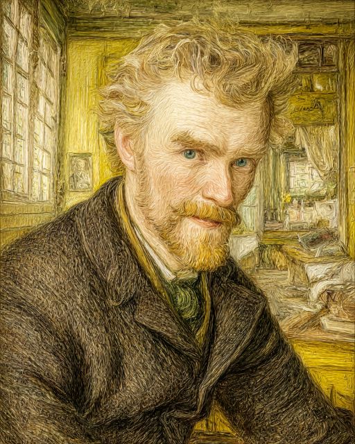 Captured in the unique swirls and vibrant brushstrokes that hallmark Vincent van Gogh's unmistakable style, 'Portrait of Dr. Gachet in His Yellow Room Study' invites viewers into a moment of profound introspection and somber beauty. The painting depicts Dr. Paul Gachet, who cared for Van Gogh during the final months of his life, seated in a rustic, yellow-painted room that seems alive with dappled sunlight filtering through a window. Gachet's gaze is piercing yet weary, his eyes reflecting a deep understanding and empathy, possibly mirroring Van Gogh's own turbulent emotions. The texture of his suit and the intricate details on the walls and furniture exemplify Van Gogh’s mastery in conveying mood and character through his vivid palette and dynamic forms. This portrait is not merely an image, but a narrative of companionship and the delicate strands of human connections, rendered in colors that sing with emotional intensity. *** About the Portrait of Dr. Gachet: This compelling piece was painted in 1890, during Vincent van Gogh's stay in Auvers-sur-Oise, under the care of Dr. Gachet. The doctor was not only a physician but also an art enthusiast who often supported artists in that era. Van Gogh’s portrayal of Gachet speaks volumes about their relationship, depicting the doctor as a kindred spirit and a confidante amidst Van Gogh’s own mental battles. The choice of yellow, a color denoting warmth and light, perhaps symbolizes the solace Van Gogh found in Gachet’s company. After changing several hands and creating records at auctions, the painting now resides at the Musée d'Orsay in Paris, attracting thousands of art lovers eager to glimpse into the artist’s poignant farewell to his muse and guardian. Disclaimer: This is a digital reproduction inspired by the original artwork. It is not an official scan or photograph of the original painting.