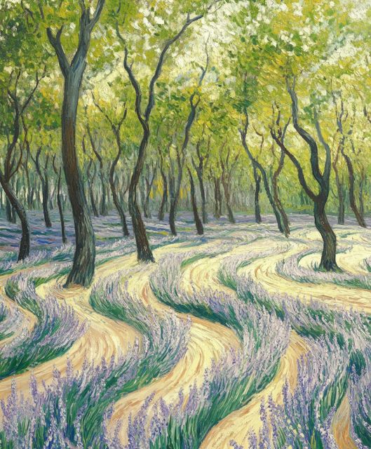 Van Gogh's "Les Alyscamps", Lavender Trails and Golden Spring Hues - by Van Gogh