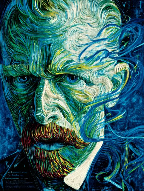 The swirling energy of blues and vibrant contrasts in this artwork encapsulates the turmoil and brilliance of Vincent van Gogh's mind. Reimagined in the style of modern designers Ross Lovegrove and Stefan Sagmeister, the piece transforms the classic self-portrait into a dynamic exploration of form and emotion. Each stroke thrives with kinetic passion, illustrating the transformative power of color and line as influenced by Van Gogh’s own expressive methods. This reinterpretation digs deep into the essence of one of history’s most tumultuous artists, presenting his iconic features with a fresh flair that bridges past and present artistic realms. Disclaimer: This is a digital reproduction inspired by the original artwork. It is not an official scan or photograph of the original painting.