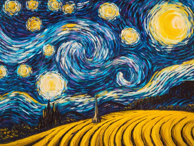 Starry Night Over the Wheat Stacks in Provence - by Van Gogh