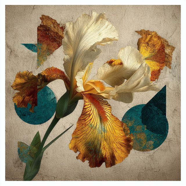 Awash in the golden and earthy hues that Van Gogh so cherished, "Irises Reimagined" encapsulates a vibrant exploration of form, texture, and color. Each quadrant of this 2x2 layout introduces a unique artistic technique, harmoniously blending classic botanical illustration with modern interpretations. In the upper left, the delicate, scientific drawing recalls the precise strokes of a naturalist's hand, while adjacent, a soft digital pastel treatment infuses the petals with a dreamlike quality. The lower left features bold, textured acrylics that add depth and a tactile sense, contrasting sharply with the abstract, cubist shapes in the final panel that fragment the iris into dynamic, almost musical compositions. Together, these panels not only reinterpret Van Gogh's original "Irises" but also pay homage to his enduring influence across art movements. *** About the "Irises Reimagined": Painted originally in 1889 during his stay at the asylum in Saint-Rémy-de-Provence, Van Gogh's "Irises" are among his most celebrated works, noted for their vibrant color and emotive form. The irises in his garden inspired him, providing a subject through which he could convey a range of feelings from melancholy to awe. Van Gogh's style in "Irises" was influenced by Japanese woodblock prints, with their bold outlines and unusual angles. This reimagined work takes these elements into new realms, employing modern digital art techniques and mixed media to offer a fresh perspective on Van Gogh's themes. Originally, the irises suggest a fleeting moment of beauty in a turbulent life. Today, the painting resides in the Van Gogh Museum in Amsterdam, serving as a testament to his pioneering techniques and his quest for expressive, emotional landscapes. This piece aligns with his broader oeuvre, characterized by a profound sensitivity to natural subjects and an innovative approach to the Impressionist and Post-Impressionist styles that he helped redefine. Disclaimer: This is a digital reproduction inspired by the original artwork. It is not an official scan or photograph of the original painting.