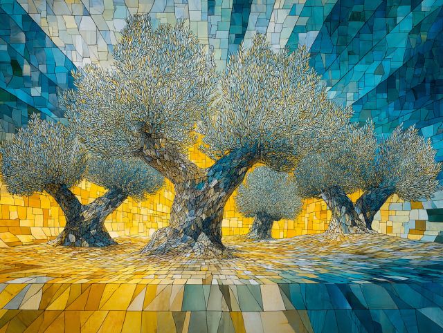 Van Gogh's Olive Trees Reimagined in a Modernist Mosaic of Light and Color - by Van Gogh