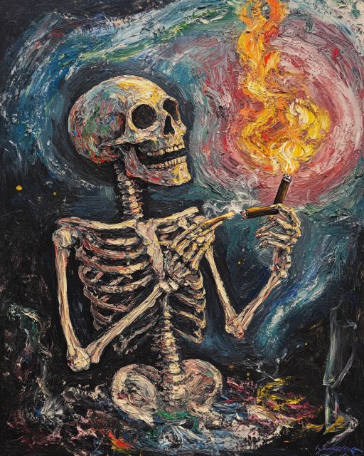 Van Gogh's "Skull of a Skeleton with Burning Cigarette" Reimagined in Dark Fantasy - by Van Gogh