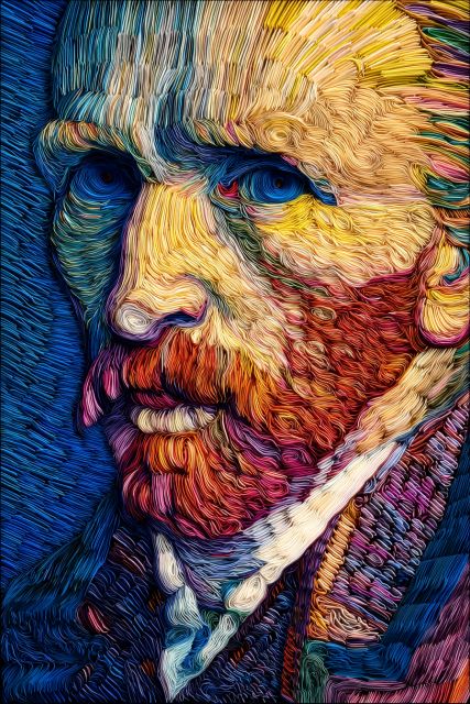 Immerse yourself in the vivid hues and emotional texture of Vincent van Gogh’s captivating self-portrait. With each brushstroke, Van Gogh conveys the turmoil and passion of his inner world. The bold, swirling lines and vibrant color palette encapsulate his unique style, revealing his state of mind during his most tumultuous periods. The play of colors—from fiery oranges to somber blues—mirrors the artist's psychological depth. This painting is not just a visual exploration; it's an invitation into the soul of one of the most celebrated figures in art history. Van Gogh's use of transparent paint accentuates the raw, unfiltered emotion etched into every line on his face, making the portrait a powerful reflection of his artistic genius and personal struggles. *** About the Vincent van Gogh's Self-Portrait: Vincent Van Gogh painted this self-portrait in the late 1880s, a period marked by profound personal and artistic development. Known for his expressive use of color and dynamic brushwork, Van Gogh captured his psychological and emotional states in his portraits, which remain some of his most celebrated works. This painting, created during a time of isolation and mental distress, offers a window into his complex emotions and a testament to his enduring spirit. Van Gogh’s technique—characterized by thick, gestural brushstrokes—helps convey a sense of immediacy and intensity, which is particularly poignant in his self-portraits. The inspiration behind this work likely stems from Van Gogh’s ongoing quest for self-understanding and artistic perfection. Although the painting’s current location is not definitively known, it echoes the style of pieces typically found in major museums that celebrate post-impressionist art. This self-portrait not only highlights his innovative style but also the deep personal connection Van Gogh had with his own psychological landscape. Disclaimer: This is a digital reproduction inspired by the original artwork. It is not an official scan or photograph of the original painting.