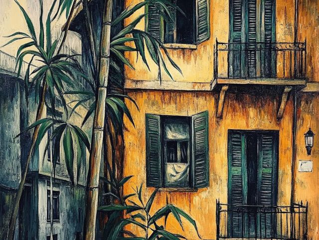 Swept away by the vibrant hues of ochre and green, "The Yellow House" is a compelling embodiment of the soul of Arles, as seen through the eyes of Vincent van Gogh. This piece, alive with audacious yellow walls and shuttered windows, captures the quintessence of provincial life infused with a palpable, almost rhythmic palpitation of day-to-day activities. Van Gogh’s application of bold, realistic strokes and the sharp contrast of the verdant palms against the sun-drenched façade evoke a sense of place that is both deeply personal and universally resonant. He employs thick impasto and confident contours to sculpt not just the physical edifice but also the atmosphere surrounding it, which whirls around the viewer's senses with an almost tactile intimacy. *** About the "The Yellow House": Disclaimer: This is a digital reproduction inspired by the original artwork. It is not an official scan or photograph of the original painting.