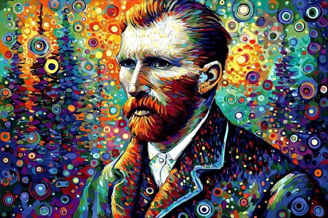Vibrant Explorations: Van Gogh's Radiant Self-Portrait in Circular Motifs - by Van Gogh