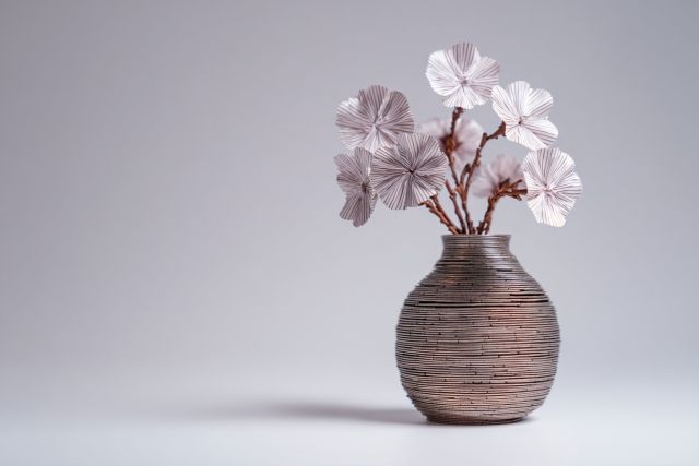 Delicate Ceramic Vase with Fine Paper Flowers: Artistry in Simplicity