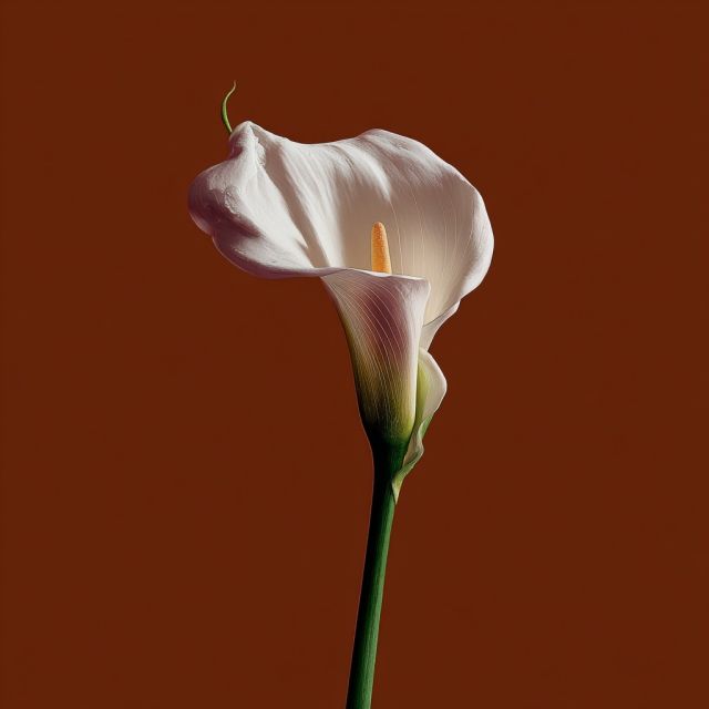 "Elegant Solitude: A Lush White Calla Lily against Burnt Sienna"