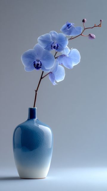 Serenity in Bloom: Elegant Blue Orchids in a Sleek Ceramic Vase