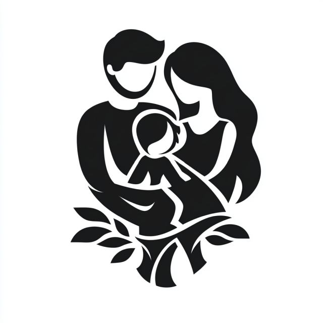 Celebrating New Life: A Family Embrace in Monochromatic Art