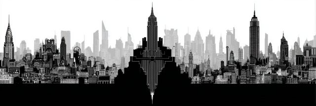 Enigmatic Silhouettes of New York: A Monochrome Art Deco Vista