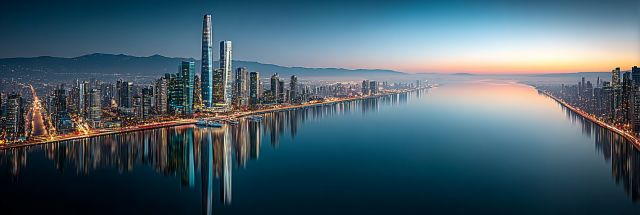 As the first rays of the Fourth of July sunshine spill across the bay, they kiss the San Francisco skyline, bringing its contours to life with a golden radiance. This breathtaking canvas captures the city awash in a festive glow, the iconic buildings outlined against a deep blue sky that promises a day of celebration and national pride. The waters of the bay mirror the sky, tranquil and vast, cast in the early light of dawn. In this skillful composition, the view spans from the bustling piers to the serene heights of the city's famed hills, a panoramic embrace of urban beauty and natural grandeur.