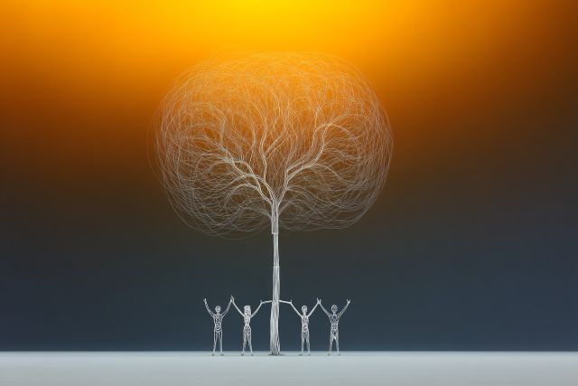 Celebrating Unity: Human Figures Embrace Under a Radiant Tree