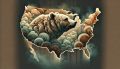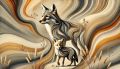 Motherly Love Amidst Swirling Sands: An Abstract Coyote Portrait