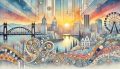 Enchanting Sunset Over Portland in a Whimsical Artistic Fusion