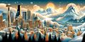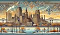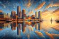 "Golden Reflections: Oakland Skyline in Cubist Splendor"