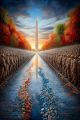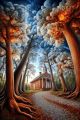 Autumn Embrace: Denver's Skyline Amidst a Dreamlike Fractal Forest
