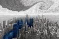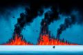 Engulfed Skyscrapers: A Vivid Red and Blue Meltdown Scene