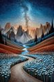 "Starry River and Floral Fields: A Van Gogh-Inspired Dreamscape"
