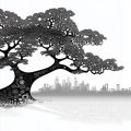Mystical Fractal Tree and Miami Skyline in Monochrome Elegance